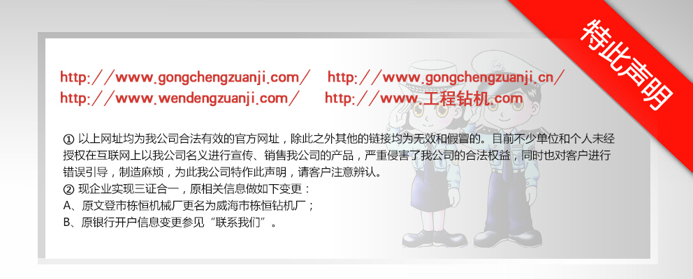 威海市棟恒鉆機廠隸屬于文登市工程鉆機廠,主要生產、銷售工程鉆機。它坐落于文登市西鋪頭工業(yè)園,這里科技發(fā)達,交通便利,制造業(yè)集中。 自1982年建廠以來,經過多年的優(yōu)化改革和沉淀積累,擁有精密、大型加工設備近百臺的生產企業(yè)之一。現在研制成功的GJ-400、GJ-250S、GJ-250A、GJ-240S、GJ-240A、GJ-180S、GJ-180A型等鉆機。在其它產品上,企業(yè)建立了長期、中期、短期的發(fā)展規(guī)劃,一系列的高性能產品正在不斷推出中,企業(yè)應市場需求對系列產品進行了優(yōu)化組合,開發(fā)了與之對應配套的三腿、四腿單天車輪、雙天車輪鉆塔;泥漿泵—BW-160Q、BW- 200Q型球形閥泥漿泵大大提高了泵的使用性能和機械效率